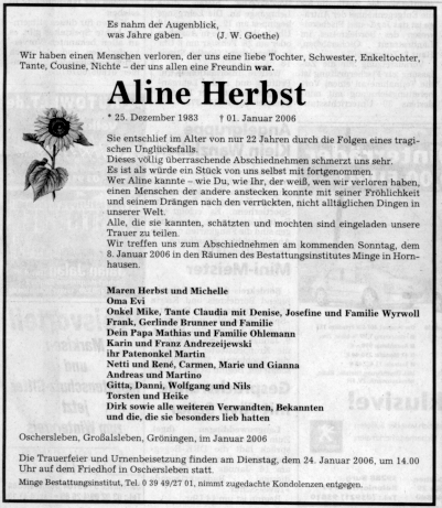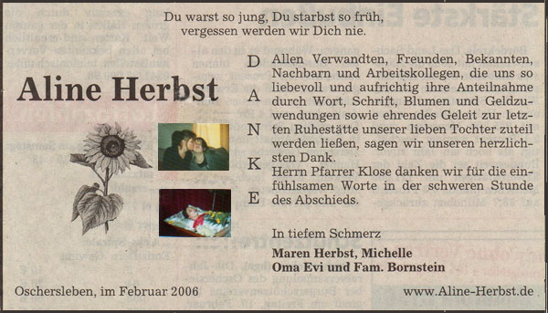 Aline Herbst Gedenkseite