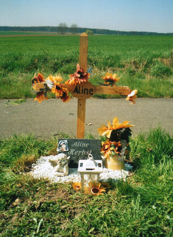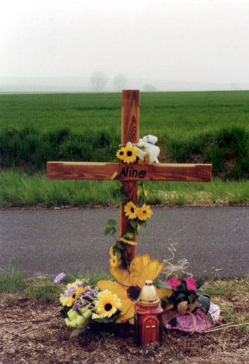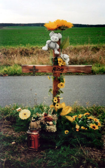 René hat ein neues Kreuz für die Unfallstelle gemacht. Wir konnten so das kaputte Kreuz ersetzen. Die letzten Fotos entstanden im April 2009.