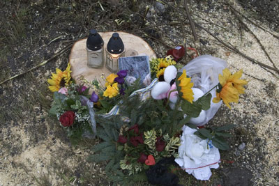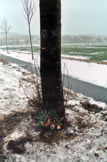 Noch am Unfalltag besuchten unsere Freunde Karin und Franz die Unfallstelle und legen Blumen nieder. Karin stirbt wenige Wochen später, am 25.Februar, nach langer, schwerer, mit